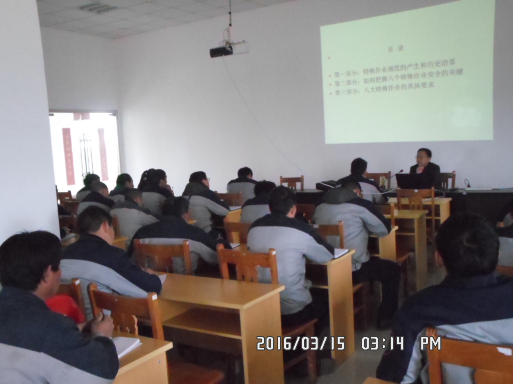 為了使廣德一廠區(qū)管理人員更好的了解“八大特殊作業(yè)”規(guī)范和要求,我公司安環(huán)部于3.15日下午15::00在科技樓二樓對廣德一廠區(qū)的所有管理人員進行了“危險化學(xué)品單位特種作業(yè)安全”培訓(xùn),此次培訓(xùn)特邀請安徽科瑞咨詢服務(wù)有限公司喬保國(專家)為大家講解。